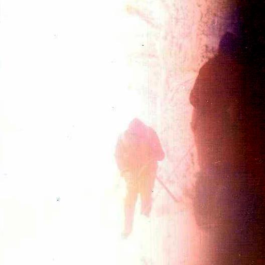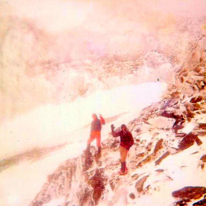 Miro para atras y veo a mi compañero boca abajo con la cara dentro de la nieve, le quito la mochila, la dejamos abandonada y seguimos hacia arriba tambaleandonos.