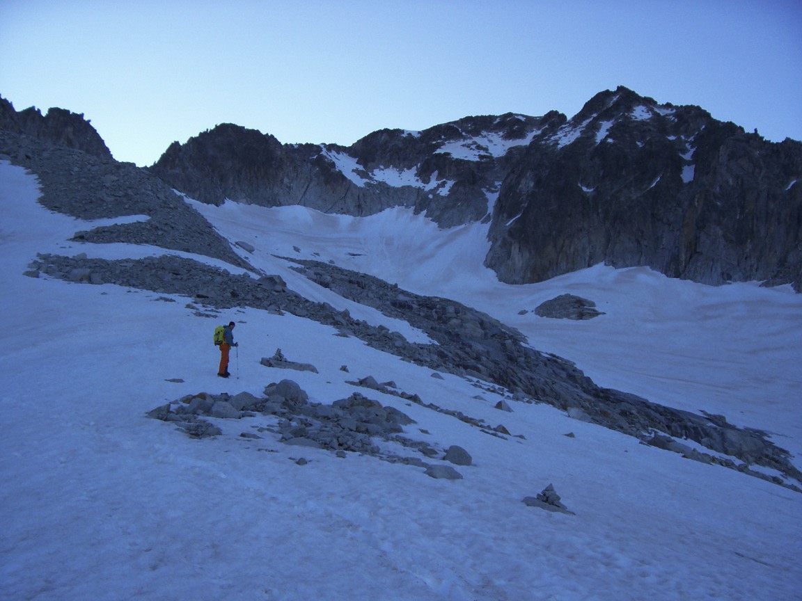 Colas a los dos lados, guias con clientes encordados, la gente pasandose la cuerda por encima para pasar…otro guia pasando grupos de 3 en 3 por el paso…repito, impresionante.