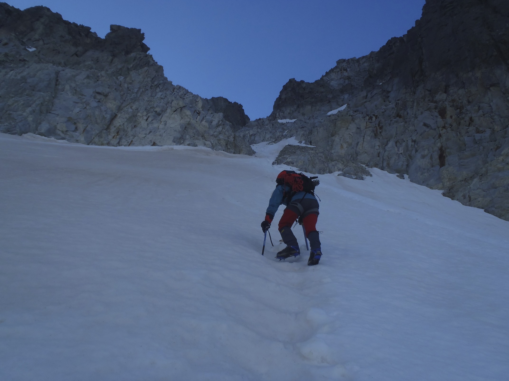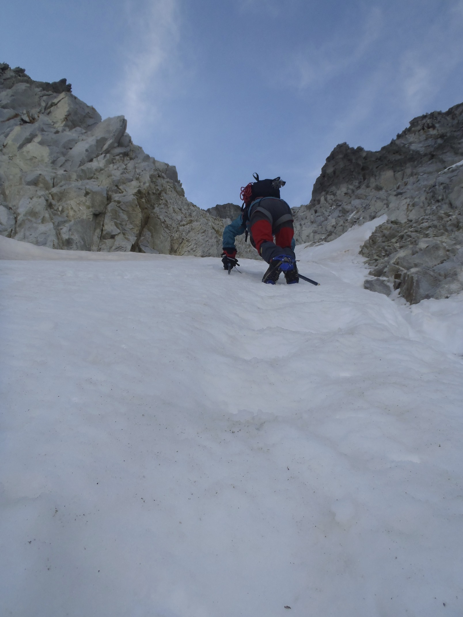 Pasos de salida del corredor Estasen, serian unos 55º o 60º de inclinación