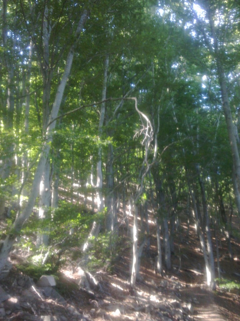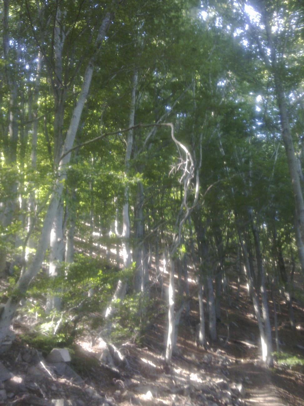 Gran parte del recorrido son bosques preciosos, solo arriba en los prados el sol ya calentaba de lo lindo…