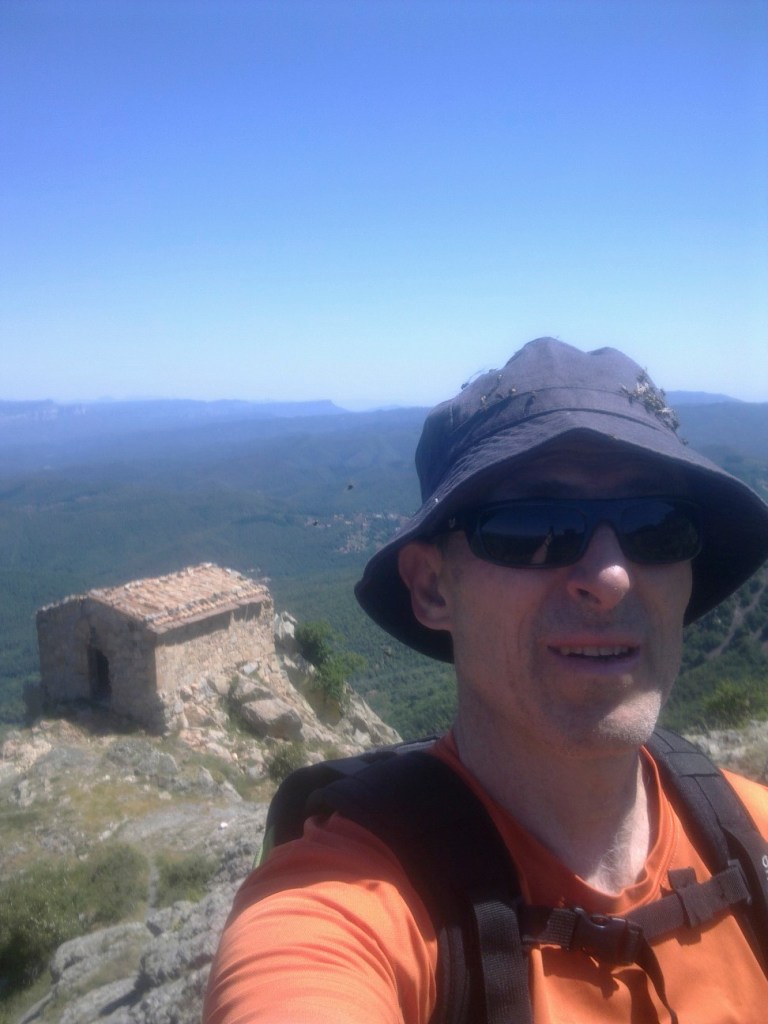 Al final, tardé 1:45 hasta la cumbre,(he visto una reseña en internet que daba 2:30 horas, aunque la verdad es no tengo una «guia oficial» para tener la referencia exacta) me he encontrado bastante bien. Eso si, mochila de pocos kilos, botas ligeras. En fin, espero sume al entrenamiento.