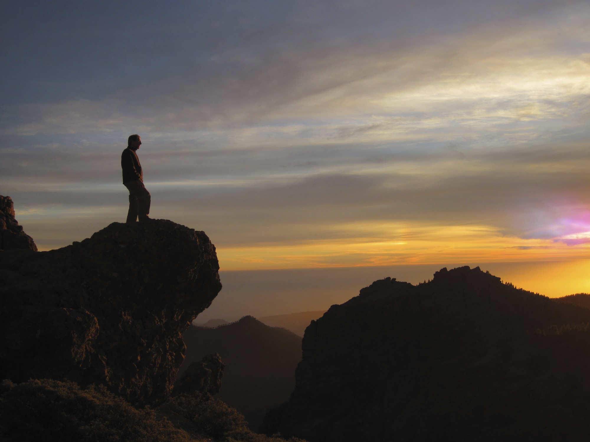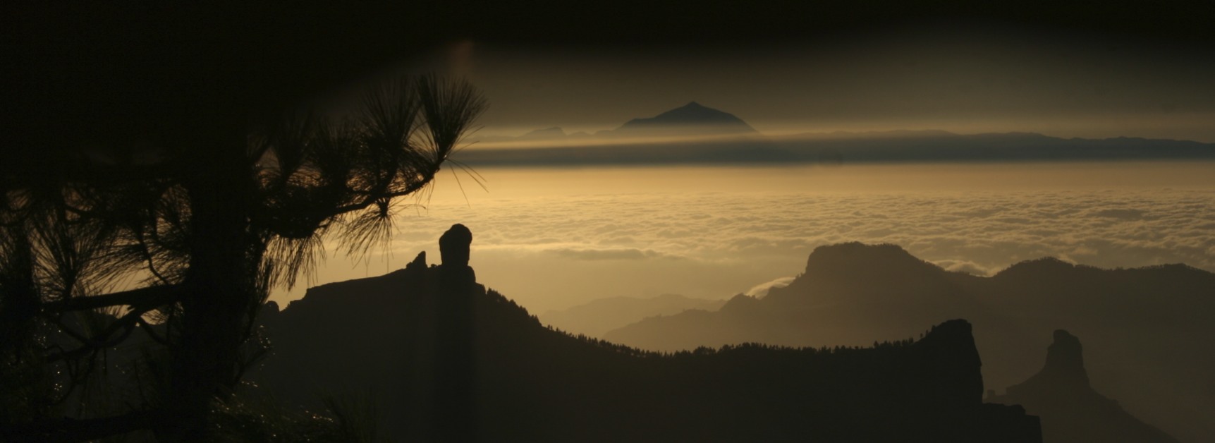 El Roque Nublo al atardecer y el Teide, en la isla de Tenerife, al fondo.(clickar foto, en grande es mas bonita)