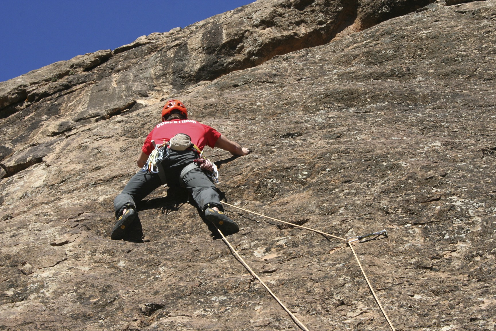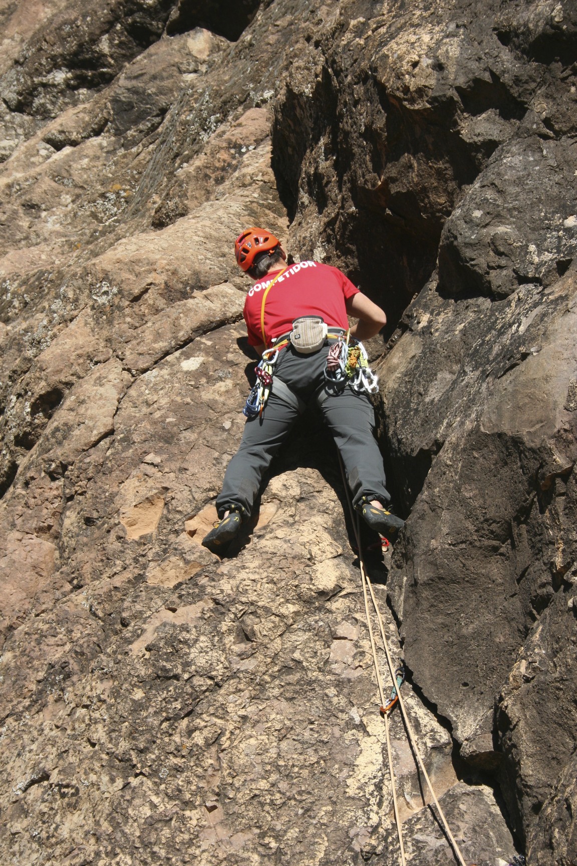 Gerard en el diedro de inicio del la via «El Genio del Lugar»,125 m v+