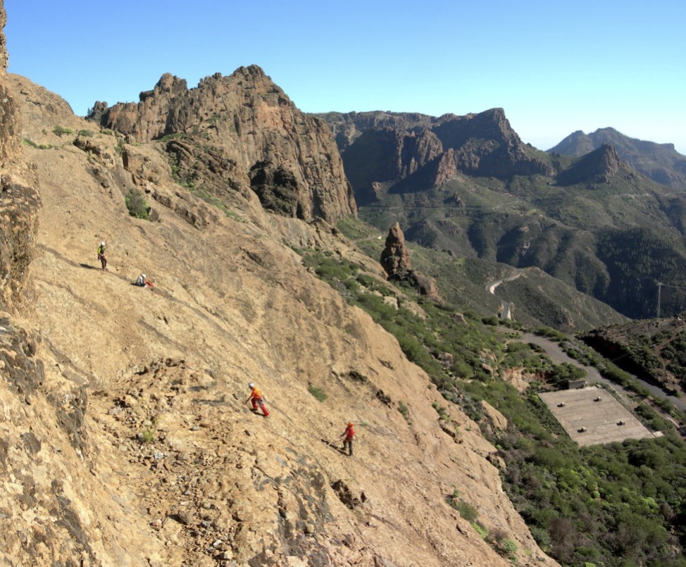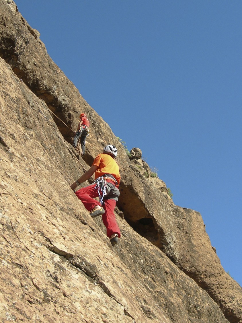 Escalando un poco con mi hijo Gerard en la escuela del Aserrador sector «Buenas sensaciones» de Ayacata