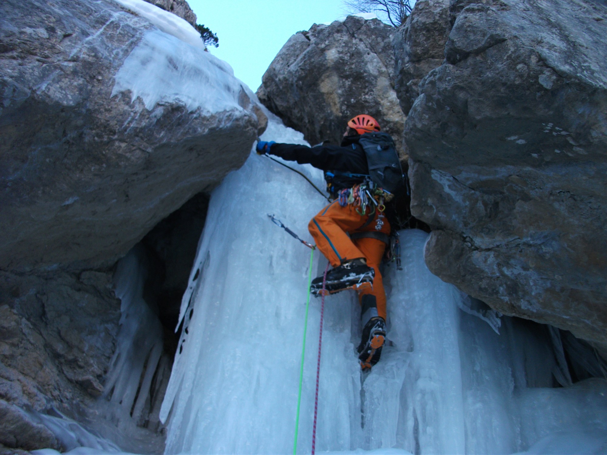 Gerard y su compañero Agustí en la columna del Verdet en el «Pedra», primera toma de contacto con el hielo este invierno.