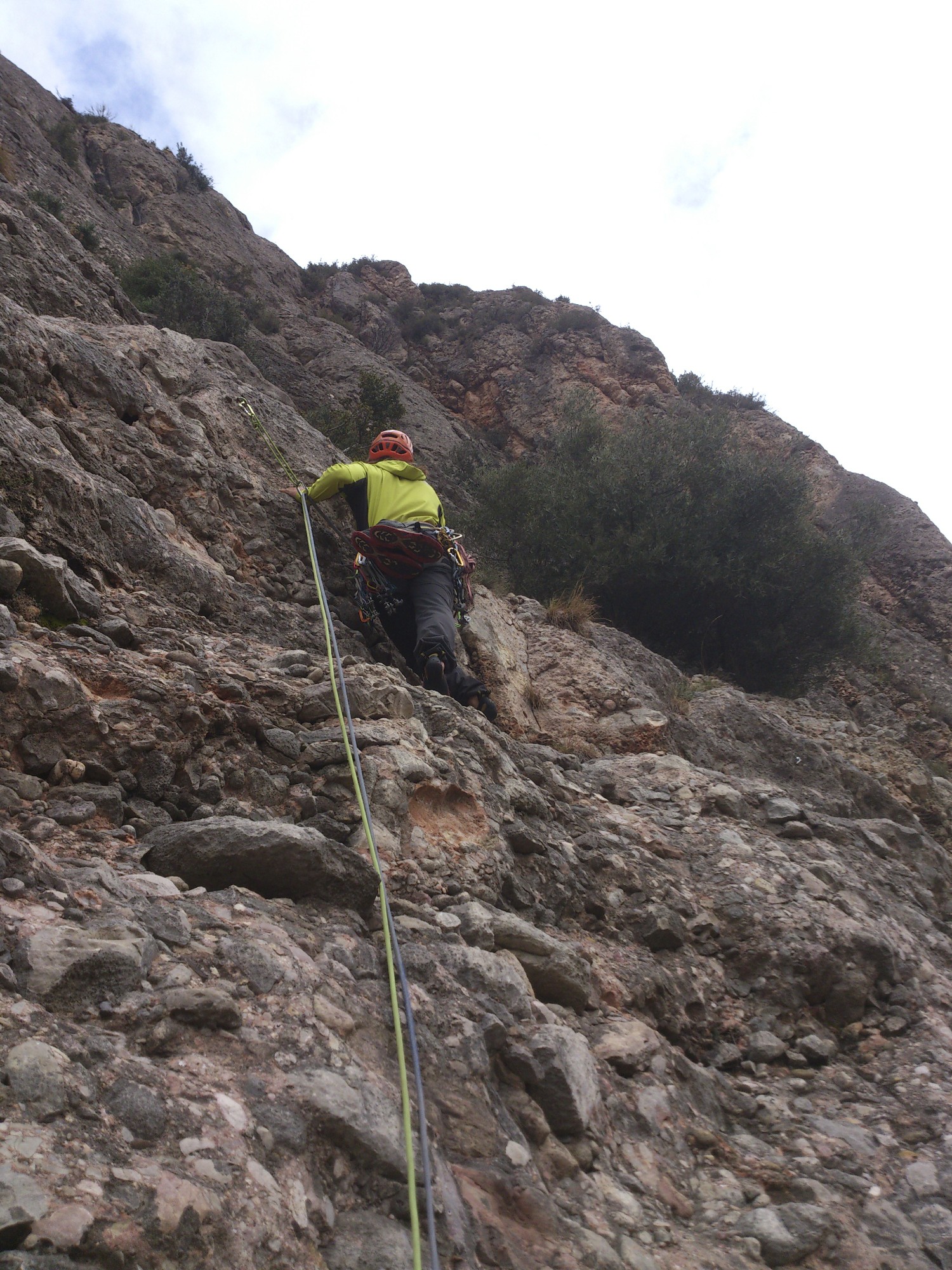 Amanece lloviendo, buff!, en carretera igual, agua y mas agua…llegando a Collbató para un poco, pero se ven las paredes grises y con chorreras, mala pinta.
