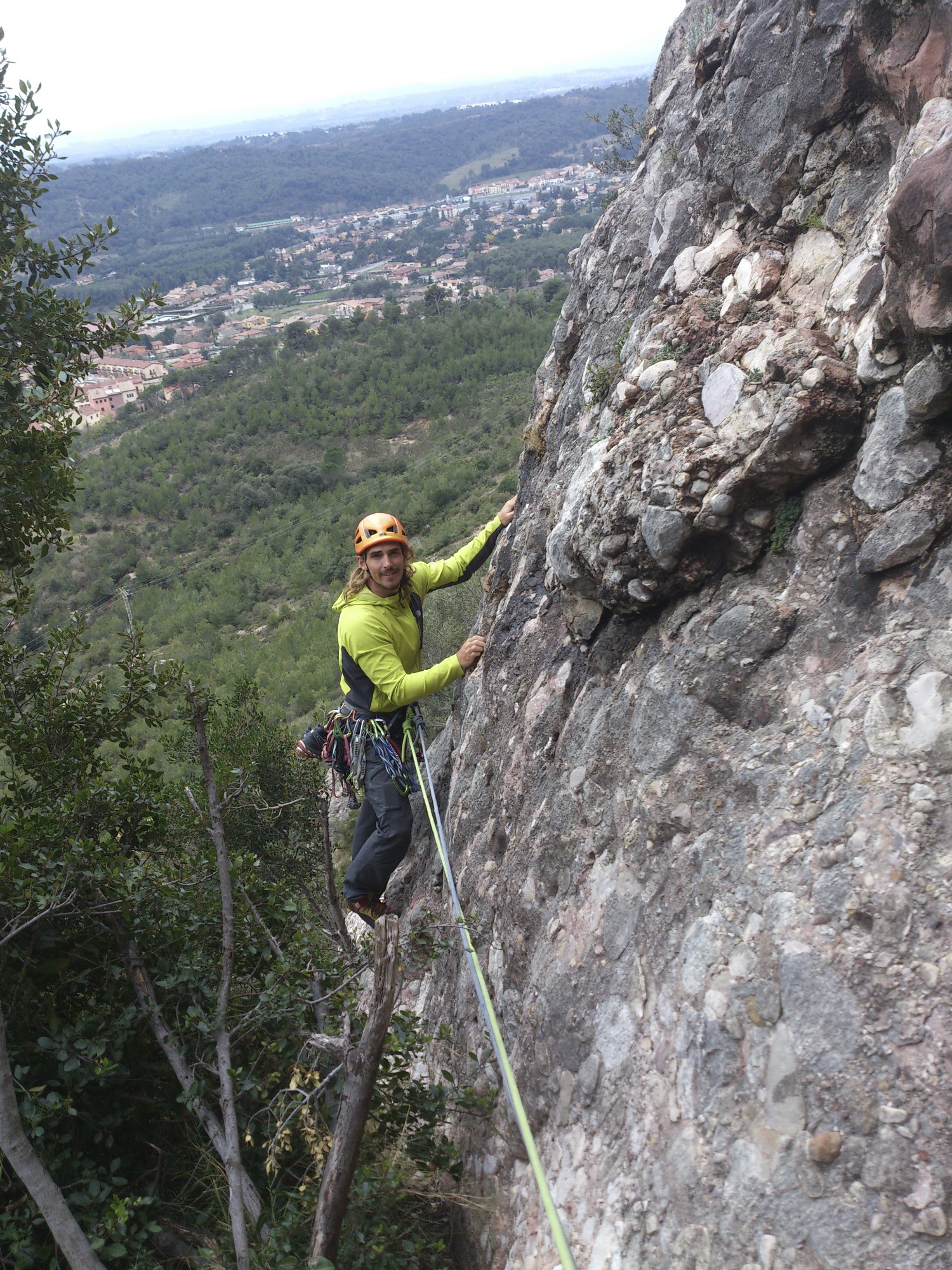 En la primera reunión empieza a gotear, no llueve mucho, pero mas arriba puede ser un show bajarse con la pared chorreando, así que decidimos rapelar y ir a hacer un buen desayuno/comida al Bruc
