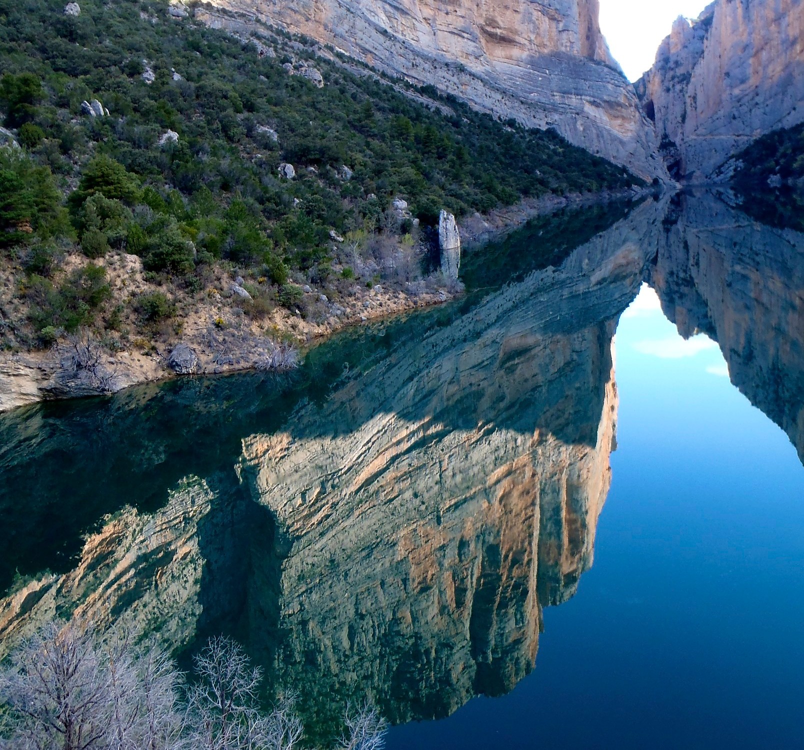 A la izquierda, pared de Aragón, a la derecha pared de Catalunya, ya que el desfiladero hace de frontera natural, aunque si me permiten la naturaleza no sabe de fronteras