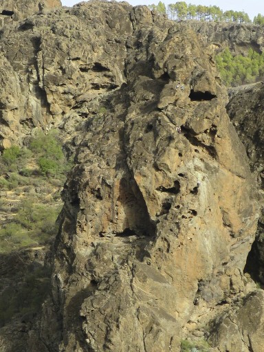 Una escalada fácil, pero muy atractiva, un roque con magníficas vistas, escalada variada, placas, fisuras, puentes de roca, arista cimera, destrepe, rappel. En fin, buenos ingredientes para pasar un rato agradable en las montañas de Gran Canaria, mas cerca de una ascensión clásica que de la pura escalada.