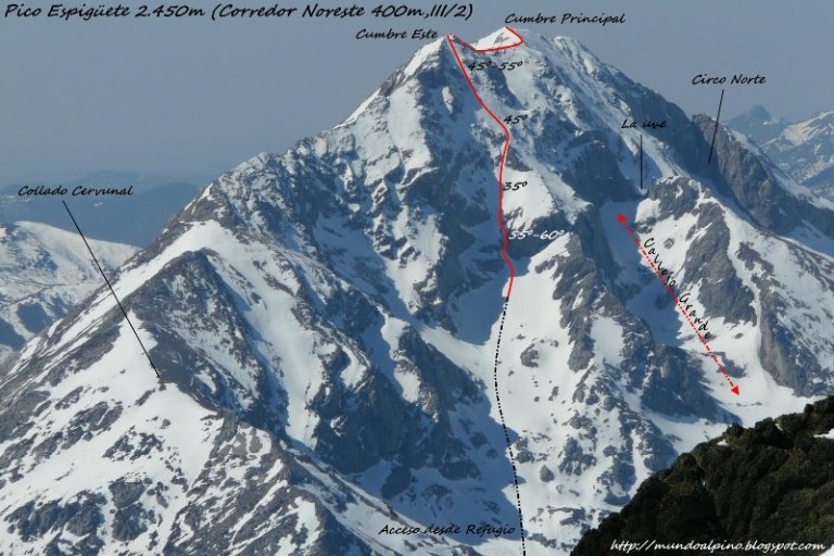 Aqui van algunas imágenes de un par de salidas de Gerard al Corredor Noreste del Espigüete y a la canal sur del Curavacas con Raul Martinez este mes de Marzo