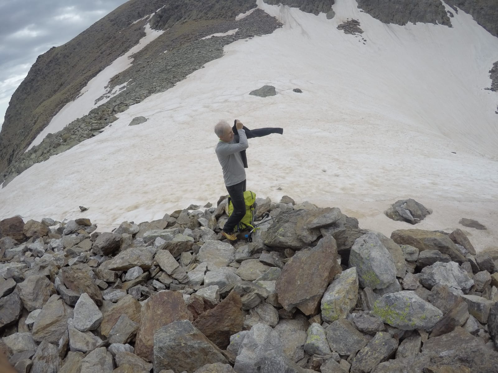 Equipo, todo, incluido saco y comida, pues, aunque el refugio estaba abierto, y en principio teníamos reserva, la hora de llegada prevista, totalmente fuera de horario, nos hizo cargar unos simpáticos kilitos de más.