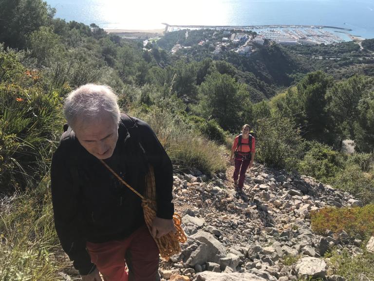 La vuelta al coche la hicimos por arriba por un terreno caótico de bloques calcáreos y plantas hasta que encontramos el camino ya más marcado, y a pesar del cansancio y de Mr. Shunt,