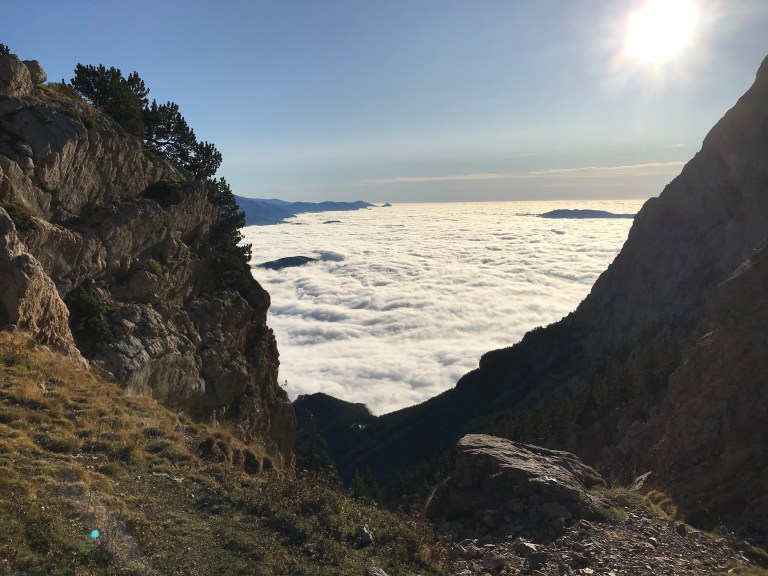 Primero por bosque vas subiendo hasta llegar al magnífico prado de «Les Setfonts» y desde aquí, por un trozo de cresta se pasa por «l´Avenç del Verdet» hasta el coll del mismo nombre.