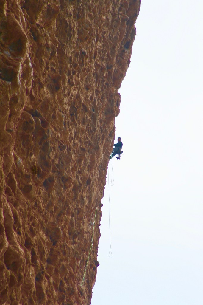«Climber» en el Pisón, la cuerda cuelga mas alla de la vertical