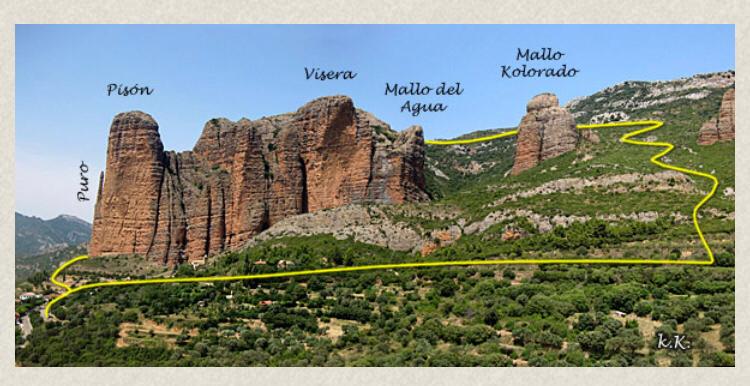 5km con 370m de desnivel para realizar en un par de horas aprox, aunque como empieces a hacer fotos te puedes quedar todo el día!Comienza la ruta por los Mallos mas orientalesMirador entre el Mallo Colorao y el Mallo del Agua, a la derechaSigue la rutaMirador de la Espinalba, el Mallo Fire desde arribaEspectacular vista, selfie!Cumbres RiglerasEl pueblo de Riglos con la pared del Fire de perfilMagnífica vista sobre el rio GállegoParedón del FireFin de la ruta con el Mallo Pisón dominando el puebloLa ruta (foto de Descubrehuesca.com)