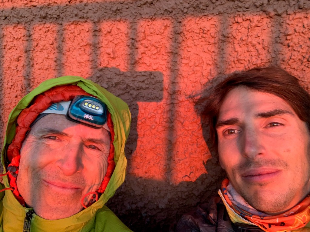 Después de unas 11 horas y tras subir más de 3.200 m de desnivel desde la salida de la Playa del Socorro llegamos al refugio, cerrado, alrededor del cual la gente se acomoda como mejor puede para dormir.