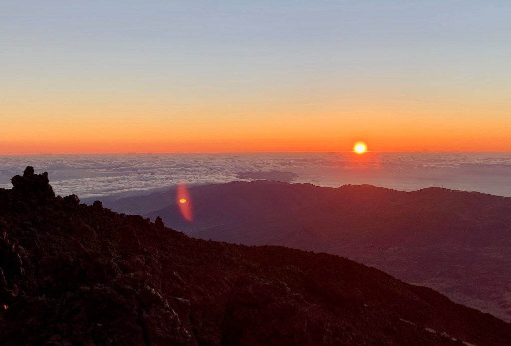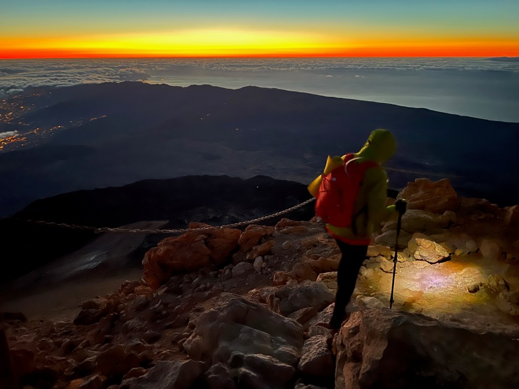 A las 5:30h tiramos para arriba mas recuperados y en menos de 2 horas estamos en la cumbre del Teide a 3,718 metros sobre el nivel del mar