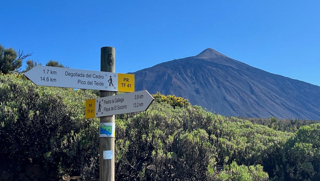 La ruta empieza a perder gradiente y cuando llegamos a la Capilla de la Cruz de Fregel, a 2.091m, se produce un cambio muy importante en la expectativas: hoy SI subiremos al Teide.