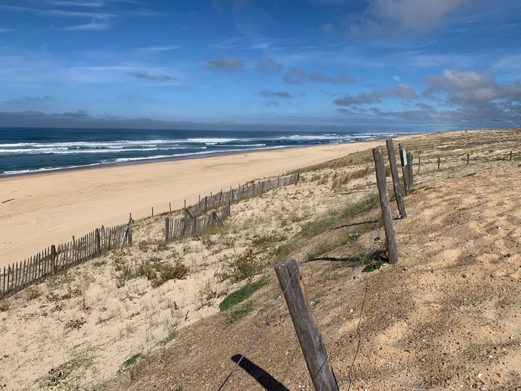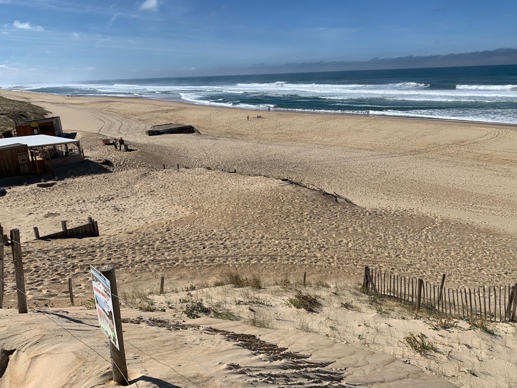 No conocíamos las Landas y volvemos maravillados. Que sitio tan especial. Muy simple, una linea norte-sur encarada al oeste y al océano Atlántico. Bosques de pinos que al llegar al mar se ven frenados por una linea de dunas costeras y la playa.