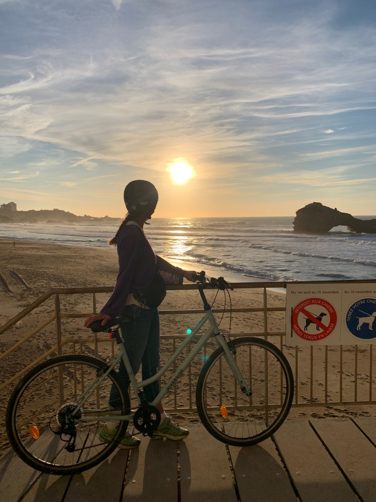 Recorrimos en bici todo en frente marítimo de Biarritz entre el faro y el mirador de la Rocher de Vierge, muy agradable, y con mucho sabor, en un día magnífico.