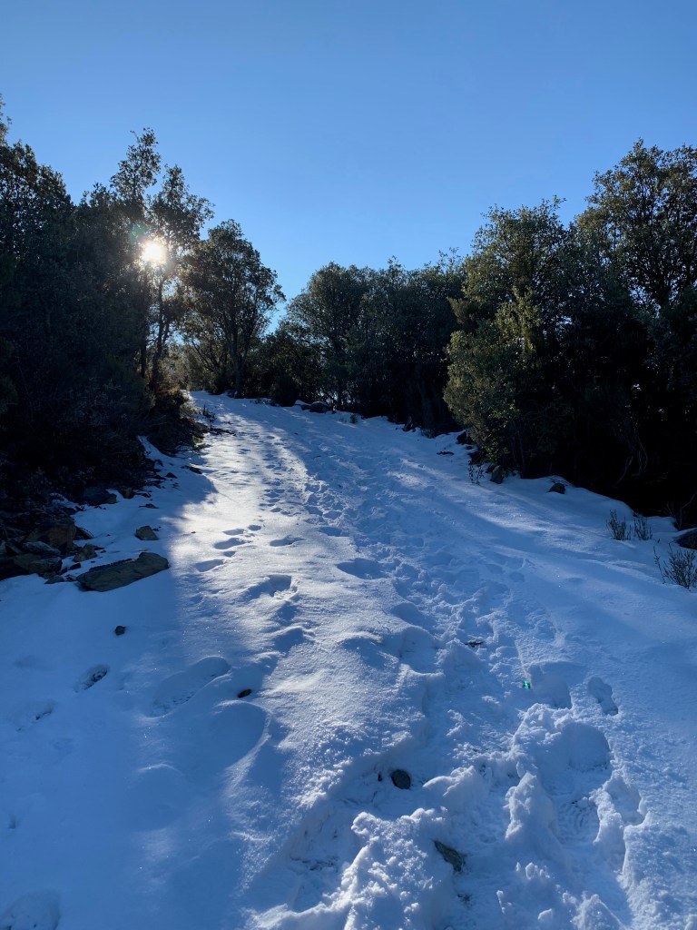 Se esta a gusto aquí arriba, aunque hace frio, mucho frio, seguimos en una de las semanas más gélidas del invierno, así que mejor bajar desandando lo realizado esta mañana, espero que el hielo del camino haya perdido dureza para evitar los patinazos!!!