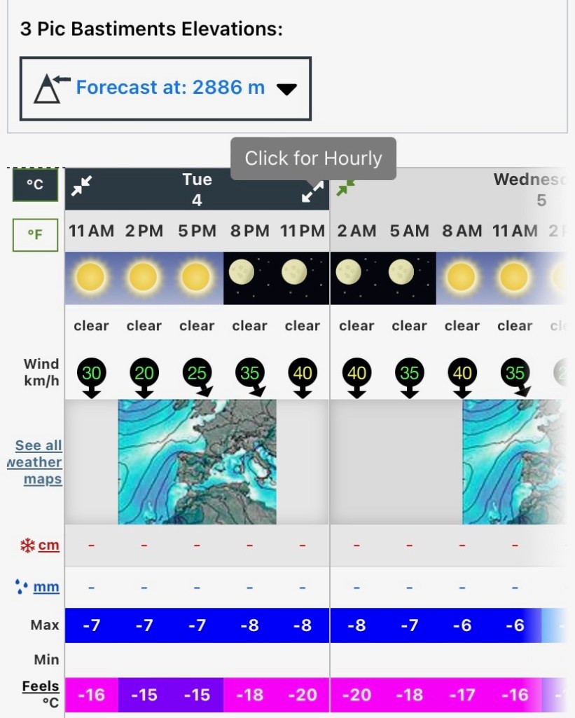 Plan A: si el viento fuera «manejable» ,completar la ruta incluyendo la subida al Gra de Fajol