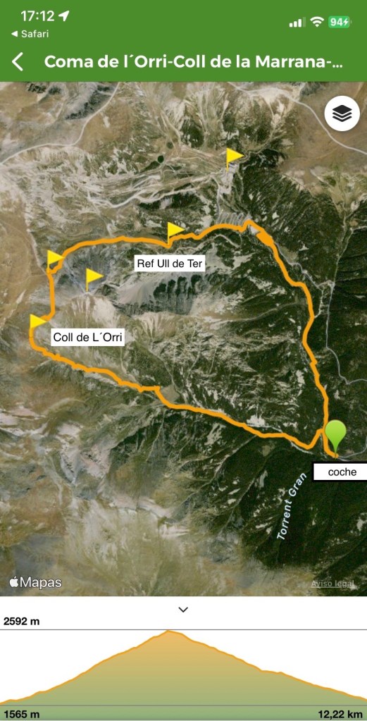 Plan B: al primer síntoma de enfriamiento por efecto del viento vuelta para atrás por el torrente de L ´ Orri hasta el coche ( con GPS del reloj de volver al inicio preparado )