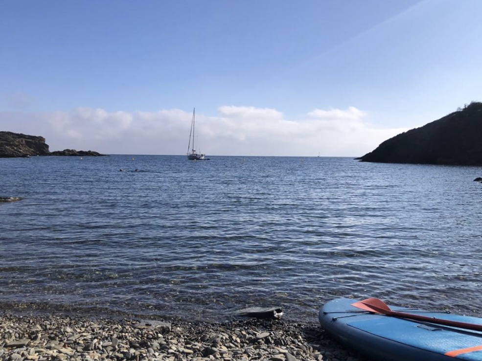 Nos quedaba un dia de playa, el viento era de sur flojo así que buscamos una cala cercana a Cadaques para hacer un poco de paddle surf en sus aguas transparentes y cristalinas. Fantástico.