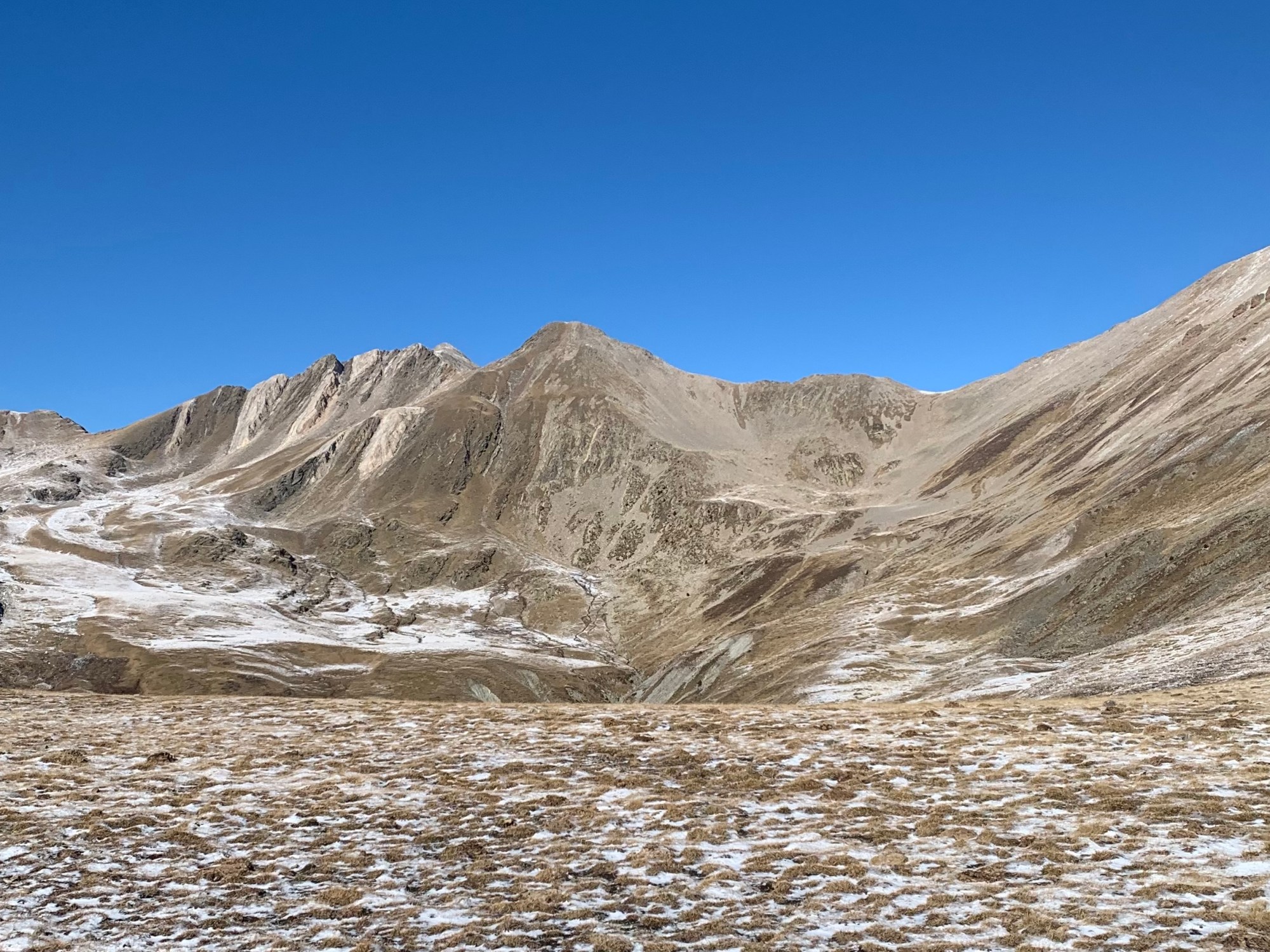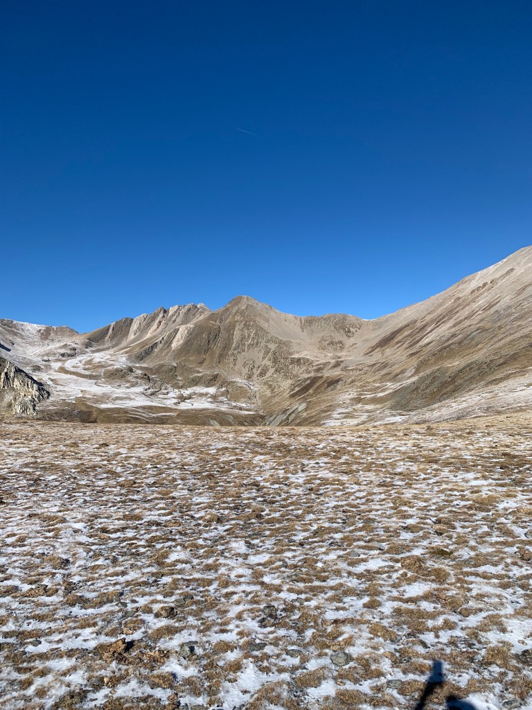 Tras algo mas de 2 horas de buena subida llego al collado de L ´ Orri, 2.510m , casi sin nieve , un poco de «azúcar glass» en las laderas oeste y norte, no habrá problema.