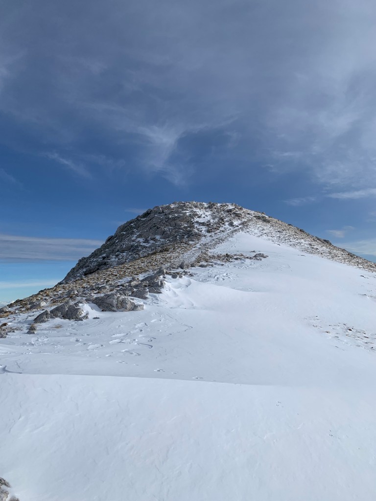 La cumbre, con su parte norte desprovista de nieve debido a los fuertes vientos de días atrás