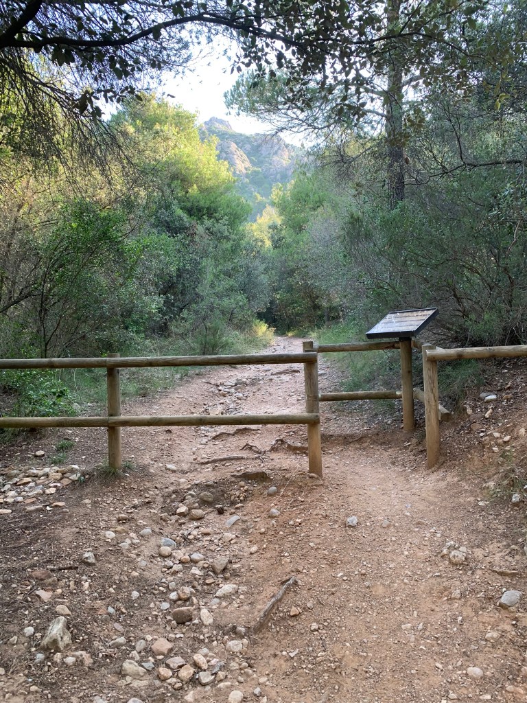Inicio del Camino de la Baterías, casi todo orientado al sur, es decir sol, sol y mas sol. A base de frutas y tragos de agua bajo en dirección a Collbató. Tenía que haber pasado por aquí mas temprano! pero aquí estoy, así que para abajo rapidito.