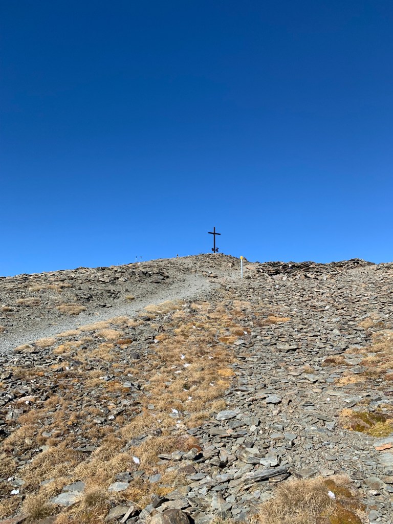 Decido que solo no voy, solo el pequeño tramo del improvisado refugio a la cruz de la cumbre me vuelve a «enfriar» los ánimos, nada, cumbre y bajar lo antes posible.