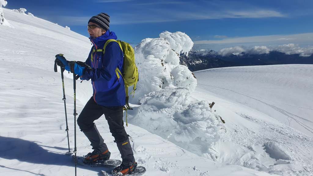 Magnífico día de montaña, temperatura baja y viento en cumbre pero disfrutando de un entorno precioso con un paquetón de nieve poco habitual.