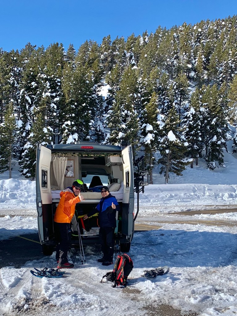Joan y Genis preparando los trastos en el parking de la Estivella, 1.935m